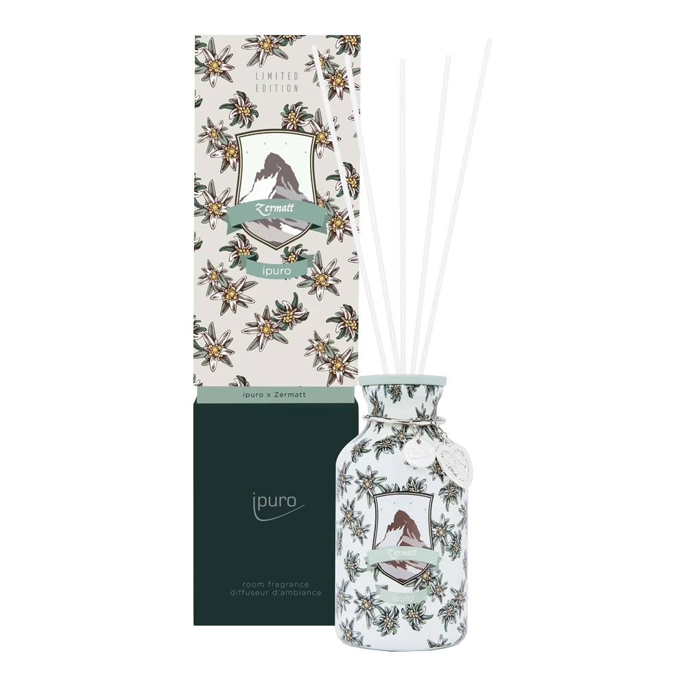 Ipuro Geurdiffuser Zermatt 240ml is een winterse geurdiffuser. In deze geur ontmoet traditie internationale flair, de zon schijnt fel aan de hemel en wordt weerspiegeld in de imposante bergen. Groen hooglandgras, magnolia, zwarte thee en dennen geven deze geur zijn houtachtig-kruidige karakter. Ook is de fles prachtig gedecoreerd en heeft deze een luxe uitstraling, waardoor deze prachtig staat in elk interieur. Zermatt is een geur uit de Limited Edition lijn van Ipuro en zal dan ook deze winter verkocht worden.